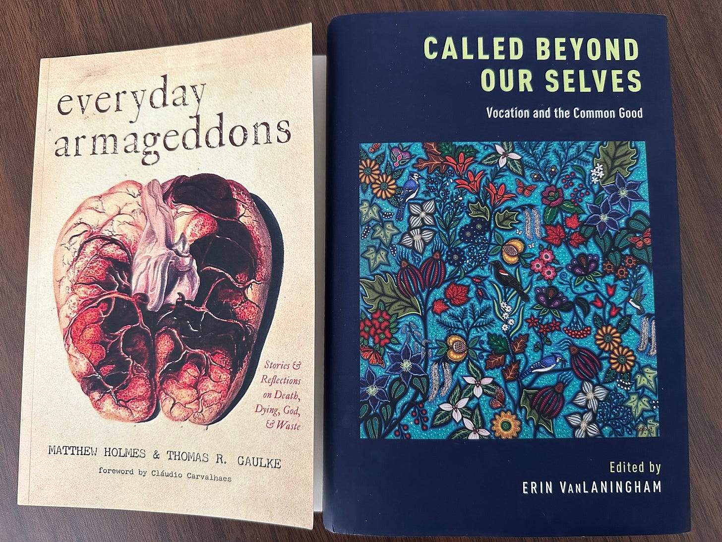 Reading these two books in tandem has left a spiritual mark. Although the first is a rather academic and pristine inquiry into the meaning of vocation, the authors launched their journey writing it at the harrowing site of the death of George Floyd. Meanwhile, the book on death, though harrowing in its topics (and sometimes gruesome) is still a book after all, with all the cleaning up such productions entail.